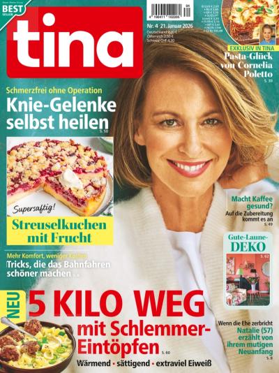 tina ist Deutschlands beste Ratgeber-Service-Zeitschrift für Frauen, die kompetente Tipps und wertvolle Ideen schätzen. tina zeigt Ihnen im Abo jede Woche ein Vorher-Nachher-Styling mit einer Rundum-Typberatung und vielen Accessoires.
